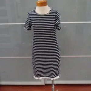Beach Lunch Lounge Nautical Stripe Short Sleeve Shift Dress