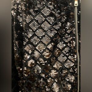 Urban Republic Black Sequin Bomber Jacket. The sequins flip but they are black on each side. Great for any party or concert. Size 14. NWOT.