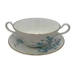 Berkshire English Bone China Blue Floral Double Handle Soup Bowl & Saucer Set