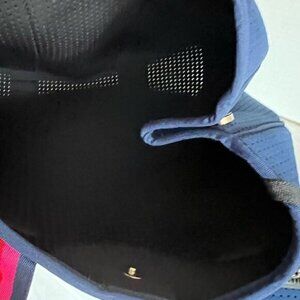 Navy with pink red tan stripe straps