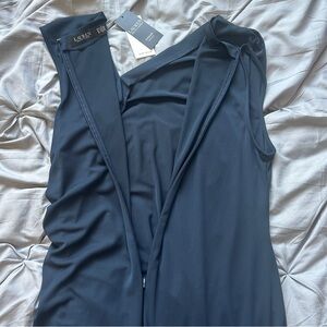 NWT, retail $135. Ralph Lauren navy blue midi dress w/ elegant draping. Perfect for any occasion. Timeless style by Ralph Lauren.