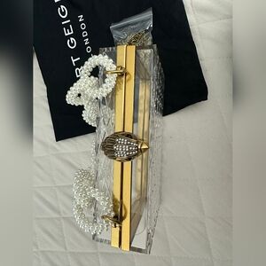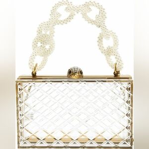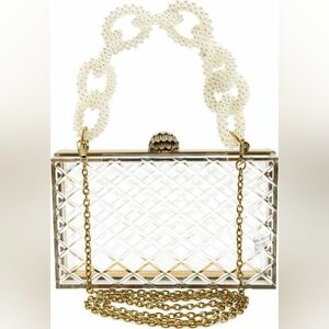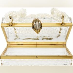 Kurt Geiger Clutch Bag Gold Clear Quilted Acrylic Pearl Handle