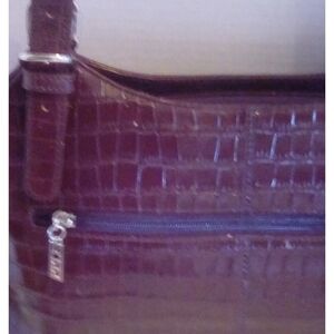 Beautiful Maxx New York leather faux croc shoulder bag. It has front zippered pocket,inside pocket and pouches ,zippered closure. Med to large size,gently loved