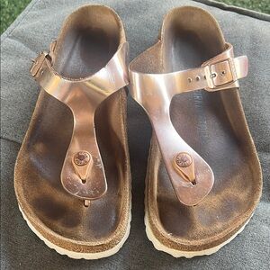 Elegant rose gold sandals with adjustable buckle. Ideal for everyday comfort.