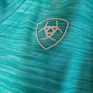 Ariat Tek women’s Laguna short sleeve baselayer shirt. Size small. Color is teal green; color shows most accurately in the closeup photos of the garment. V neck. In like new condition.