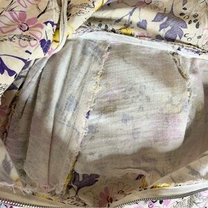 Great vintage condition with no stains, holes or tears. The interior side stays have broken into pieces. The zipper was installed inside out (or upside down?) and has a zipper stop “spike” that sticks out