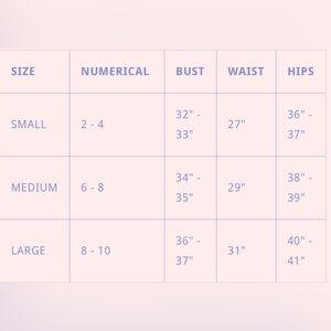 Size: Small (2-4) Medium (6-8) Large (8-10)