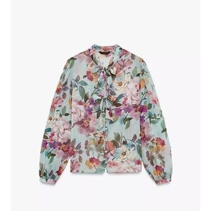NWT Zara Floral Tie Blouse