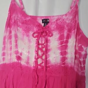 Elevate your style with this chic pink tie-dye tunic. Featuring a trendy lace-up front, it's a perfect choice for casual outings.