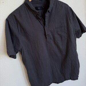 Onia Shirt Mens M Button Pullover Shirt Black Vacation Short Sleeve Linen Blend