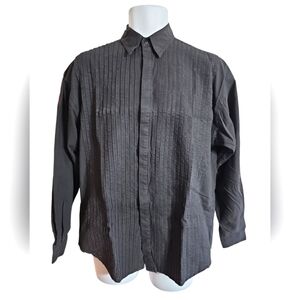 International Male Men Small Black Cotton Pleated Tuxedo Shirt 80s 90s Retro
