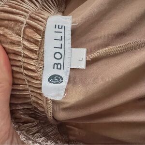 Bollie: Beige/Tan/Khaki Crushed Velvet Elastic Draw String Pull Up Joggers Sz L