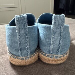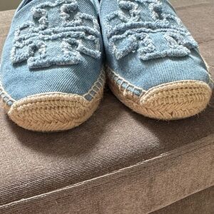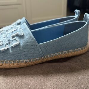 Stylish blue espadrilles with signature logo. Comfortable and chic design. Perfect for casual wear. Never worn—NWOT