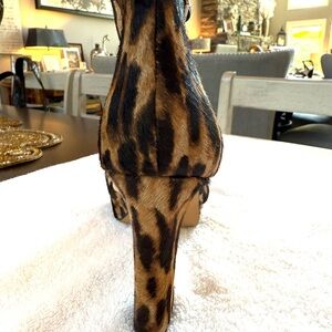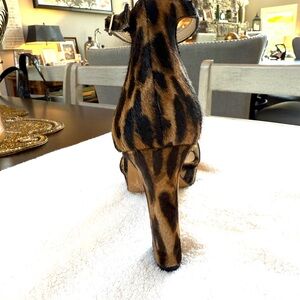 Never worn. Step out in style with these chic leopard print block heel sandals. Perfect for adding a wild touch to any outfit.