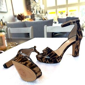 Vince Camuto (Never Worn) Suede Leopard Print Block Heel Sandals - Size 8