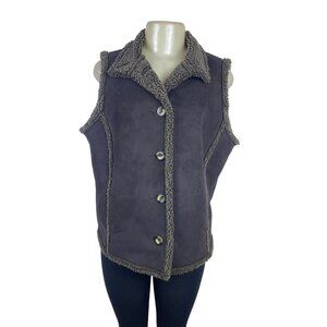 L.L. Bean Women's Gray Sherpa Lined & Sleeveless Button Front Vest Sz M
