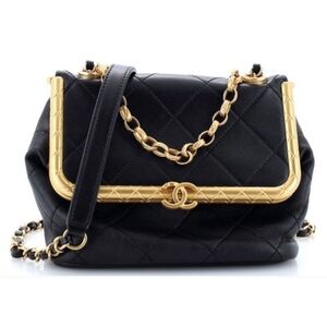 CHANEL My Crush Bag Lambskin Diamond Quilted Black Gold Link Chain Top Handle