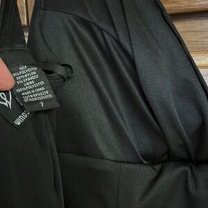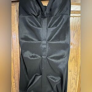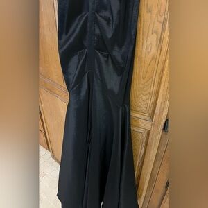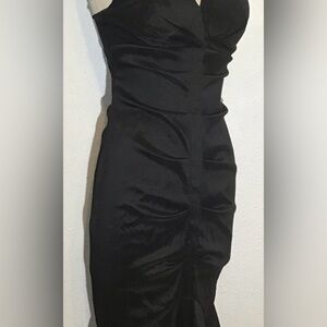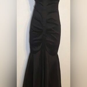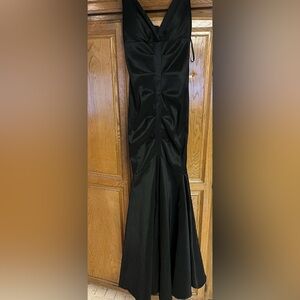 Inside soft padding at bust, zip back, slit in front at fishtail. Ruched fabric has subtle stretch and very pretty sheen. Classy and elegant for your special event! Pre owned, good condition.