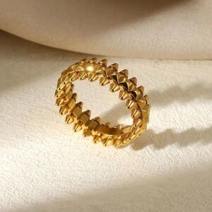 Elegant and trendy gold-plated chain link ring, beautifully adorned with sparkling cubic zirconia stones for a luxurious shine.