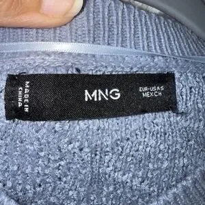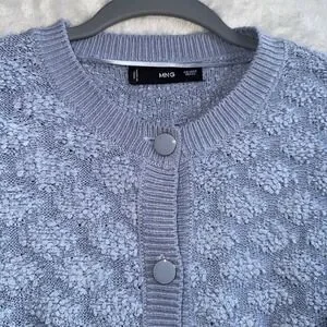 Mng Mango Textured Knit Cardigan Sweater Womens Small Blue Preppy Office Light