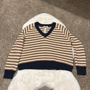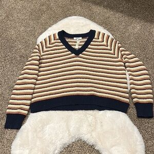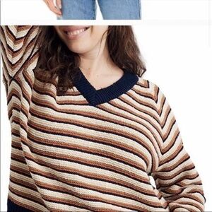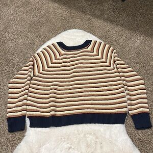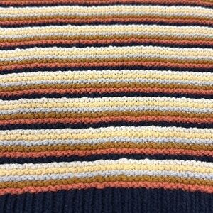 100% cotton Striped pullover knit sweater, ribbed neckline, cuffs and hem, nice color, mid-weight ,relaxed fit.