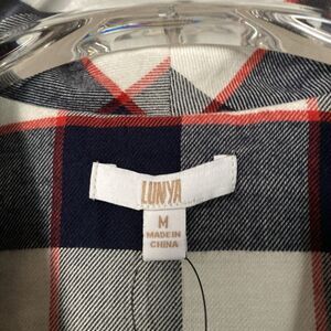 Lunya Pajama Top Buffalo Check Cotton Modal Brushed Flannel Shawl Collar Medium