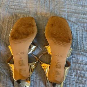 Chic gold strappy heels by J. Crew. Perfect for elevating any outfit.