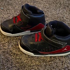 Classic Jordan sneakers with bold red accents. Durable and stylish for active kids.