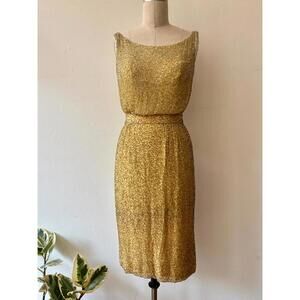 Vintage 1950s Ceil Chapman Gold Beaded Cocktail Dress