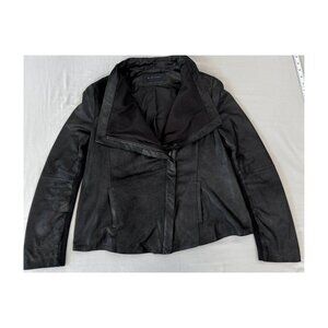 Elie Tahari Lamb Leather and Knit Jacket, Black, Shoulder Stitching, Size Large