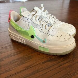 Nike Air Force 1 Fontanka in Sail / Green Strike / White. Worn a couple times, only comes with the accessories attached. Has a few scuffs that can be cleaned with a kit or place to go (Shown in the photos) comes with interchangeable color pieces