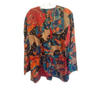 Anthropologie Maeve Crochet Long Sleeve OS Top/ Beach Cover Rainbow Boho Relaxed .