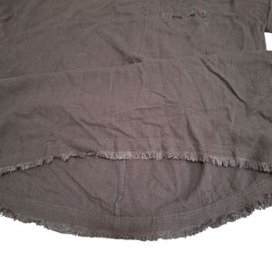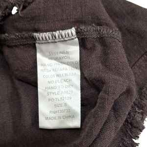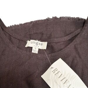 Umgee Brown Linen Blend Womens Cuffed Short Sleeve Top Sz Sm Raw Hem Pocket NEW