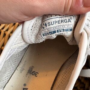 Superga White Perforated Leather Platform Lace Up Sneakers Size 8.5