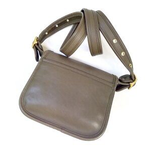 Great vintage condition Coach Legacy Trail bag in rare Olive Green glove tanned leather with front flap closure and adjustable strap.