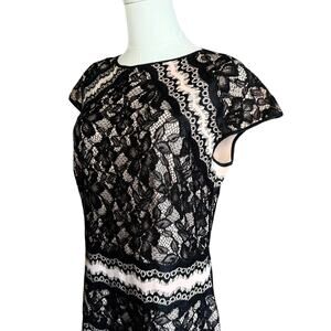 Tadashi Shoji Neoprene And Lace Cap Sleeve Gown Maxi Dress Size 12