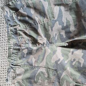 Stylish cargo pants with a classic camouflage pattern. Features multiple pockets for convenience. Ideal for casual wear. Elastic back waist band. Only worn once. 27 inch inseam.