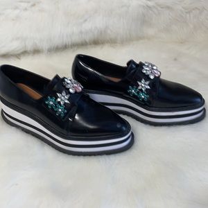 Zara Black Loafers with Jewel Embellishments