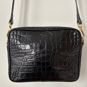Spotless interior and no odors. Excellent condition (I don't believe this bag was ever used). Features an adjustable 18 inch strap and large front pocket. Approx. 10" long x 11" tall x 5"deep.