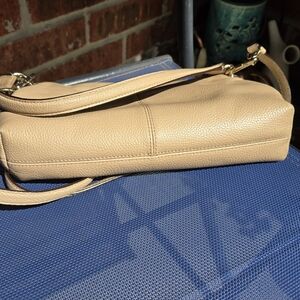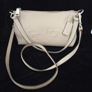 Coach Charley Embossed Horse and Carriage Pebbled Leather Crossbody TAN