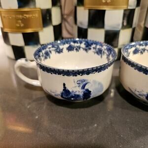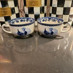 William James Farm Yard Set of 2 Tea Cups in blue and white rooster. This French Country set has no cracks or chips. Perfect set for a spot of tea for you and your friend. Pair with a tin of tea for a great gift!