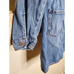 Zara Junior girls medium wash denim long sleeve mini dress size 11/12. Elastic at waist with belt loops if desired. With long sleeves with buttons at cuffs. Pocket on front left chest and on skirt. Pit to pit measures 16" across and length of 29" from mid shoulder. This shirt dress is in pristine condition. Can be layered and worn in all months.
