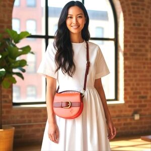 Wow coral is my fav color and this brown with it as a crossbody is chef's kiss!