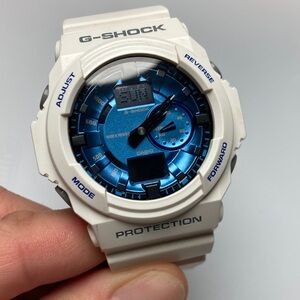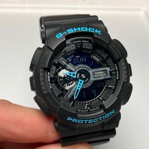 Used Casio watch. Carbon fiber style pattern on dial. Stainless case. Case back still has protective film on it. Strap in really nice condition. Some scratches on watch. See photo for condition. From smoke free home.