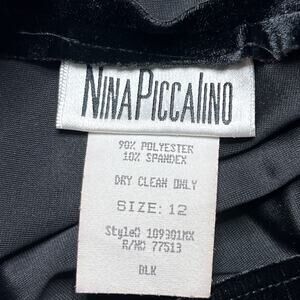 Vintage 90s Nina Piccalino Black Velour Maxi Skirt A line skirt with elastic waist. All over black velour material. Has slits on each side. Vintage 1990s, made in USA. -Size: 12 -Brand: Nina Piccalino -90% Polyester/ 10% Spandex Measurements (laying flat) -Waist: 15", 21" (stretched) -Hip: 20" -Length: 35" -Hem: 20" Party 90s Goth Fairy Gothic Glam Academia Classic Vtg Grunge Emo Whimsigoth Boudoir Whimsical Romantic Old money Old hollywood Fairycore Date Night Formal Vampy mobwife Burlesque Holiday witch witchy