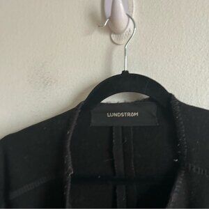 Lundström Sz M Wool Black Relaxed Open Front Lagenlook Jacket Coat Embrace effortless elegance with this Lundström wool jacket in size Medium. Designed in classic black with a relaxed, oversized silhouette, this open-front coat channels the artsy, layered Lagenlook aesthetic. Crafted from a warm wool blend, it’s perfect for transitional weather or adding statement structure to your outfits. Details: • Size M • Wool blend fabric • Timeless black color • Open front design • Relaxed, draped fit with minimalist lines • Lagenlook / art-to-wear style Ideal for layering over chunky knits or flowy pieces—this coat adds instant edge to any look. Keywords: Lundstrom jacket, size M, wool black coat, open front, relaxed fit, Lagenlook, minimalist outerwear, art-to-wear style, oversized layering piece, poshmark fashion. Great pre owned condition No size tags but measurements put it at a medium oversized fit