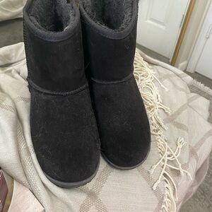 Stylish cow print mules. Open toe design. Comfortable block heel.