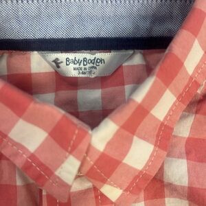 Charming checkered shirt with button-down design. Features a classic collar and chest pocket. Ideal for casual outings. Light red color