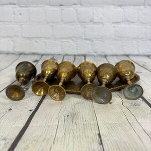 Elegant vintage brass goblet set with a matching tray, perfect for adding a touch of sophistication to your dining experience.