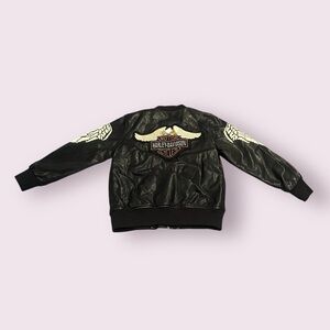 Kids Little King Black Faux Leather Jacket Wing Design Harley Davidson Patch